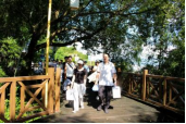 早上的莲花山清风徐徐,木栈道如一条蜿蜒的丝带镶嵌在青山之间。分行员工们身着轻便装束,精神抖擞地踏上健步之旅。