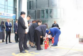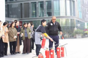 培训结束后,分行随即开展应急演练。当消防警报骤然响起,各楼层员工沿消防通道快速有序撤离至集合点。接着,张队长现场指导员工使用干粉灭火器扑灭模拟火源,并针对“一提二拔三握四压”的操作要领进行手把手教学。从一线柜员到后台员工,从监控中心安保员到食堂厨师,大家都积极参与实操演练,掌握灭火技能。