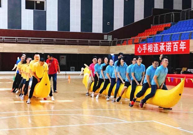 当天分行员工们被分为9支队伍,各队伍身着不同色彩的统一队服,以饱满十足的精神面貌昂首走进赛场,各式各样有趣的队名和口号一开始就为活动增添了趣味。