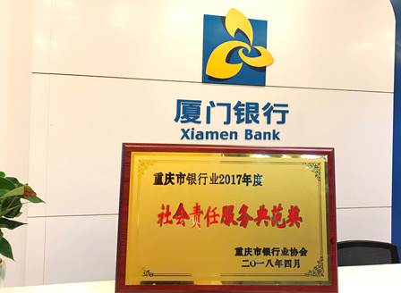 重庆市银行业协会第十八次会员大会暨《重庆市银行业社会责任报告(2017)》发布会如期举行。厦门银行重庆分行荣获“年度社会责任服务典范奖”,这是继上年度获得该奖项之后,分行连续再度获奖,充分体现出上级监管和行业专家对我行在服务大众、承担社会责任方面做出努力的肯定。
