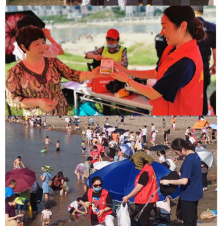 活动当天正逢38度的高温天气,分行营业部全体工作人员准备了藿香正气液、人丹等防暑药品,在江滩上免费向前来游玩的市民发放。同时兵分几组,在江滩开展保护环境宣导和拾捡垃圾净化环境活动。