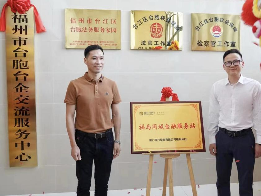 厦门银行福州分行受邀出席,并作为福州市首家金融机构在“福州市台胞台企交流服务中心”设立“福马同城金融服务站”,福州市台江区委副书记林谋东、厦门银行福州分行行长助理苏毅生共同揭牌。
