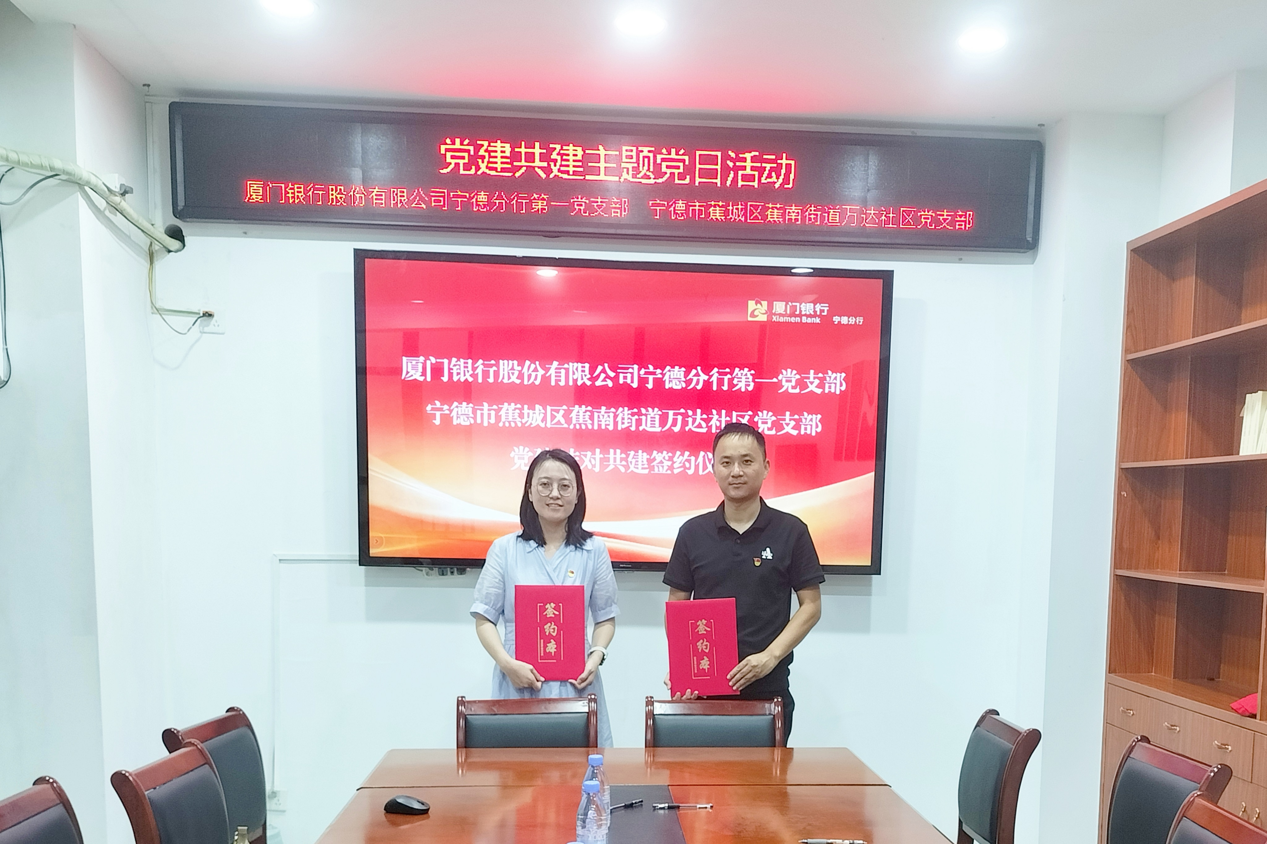 厦门银行宁德分行第一党支部与宁德市蕉城区蕉南街道万达社区党支部开展党建共建活动
