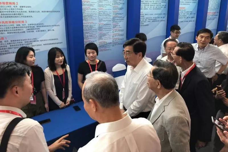 两岸企业家峰会大陆方面郭金龙理事长、台湾方面萧万长理事长等领导来到厦门银行台湾人才招募展区,了解厦门银行招聘的岗位内容和要求,详细询问了目前在厦门银行就业的台湾青年的工作生活情况,并对厦门银行在台湾人才引进等方面的工作表示肯定。