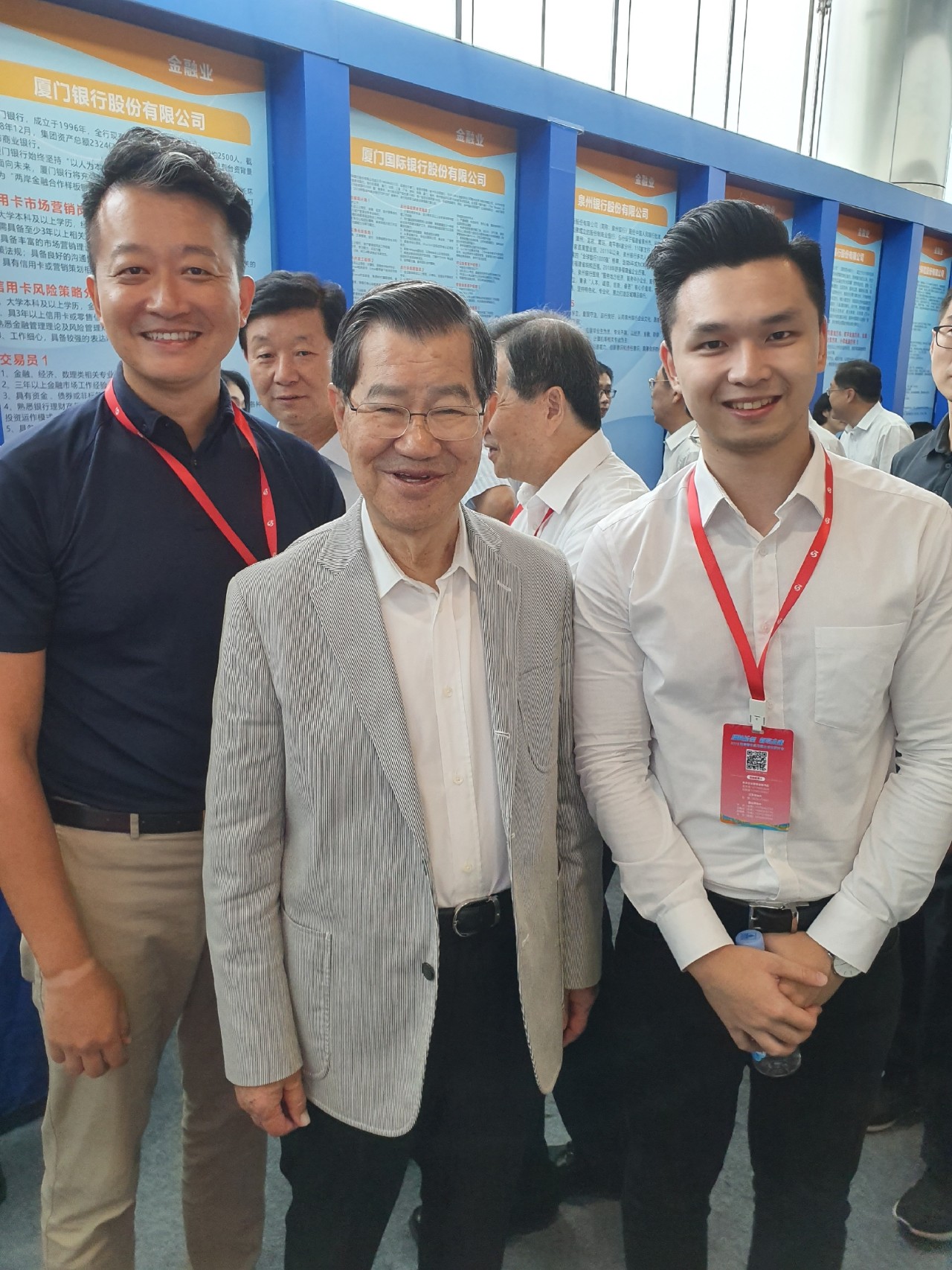 萧万长理事长与厦门银行台籍员工王汝民、郑立扬合影