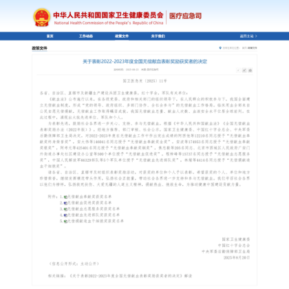 8月25日,国家卫生健康委、中国红十字会总会、中央军委后勤保障部卫生局联合颁布《关于表彰2022-2023年度全国无偿献血表彰奖励获奖者的决定》,厦门银行荣获“2022-2023年度全国无偿献血促进奖(特别奖)”。